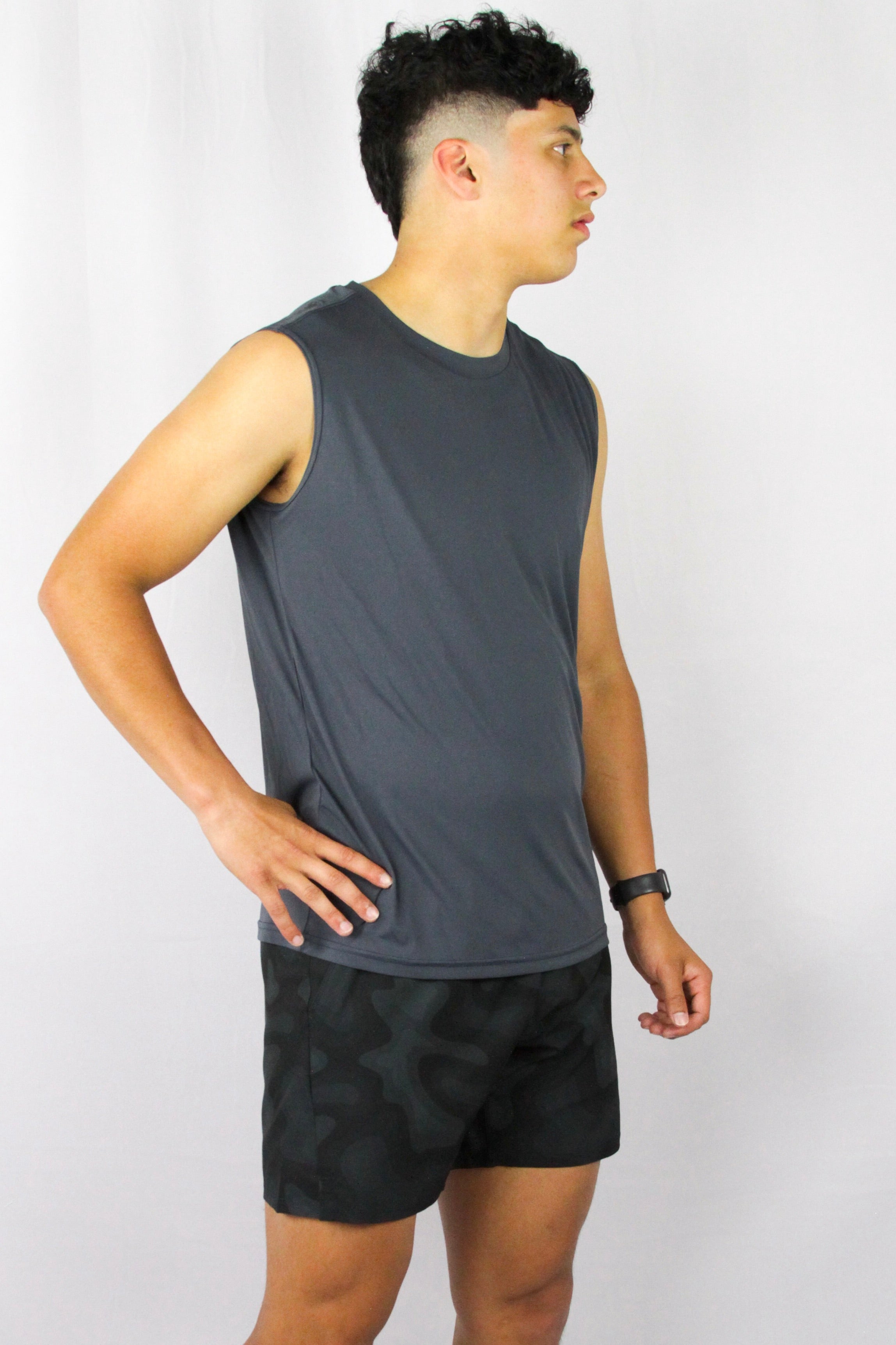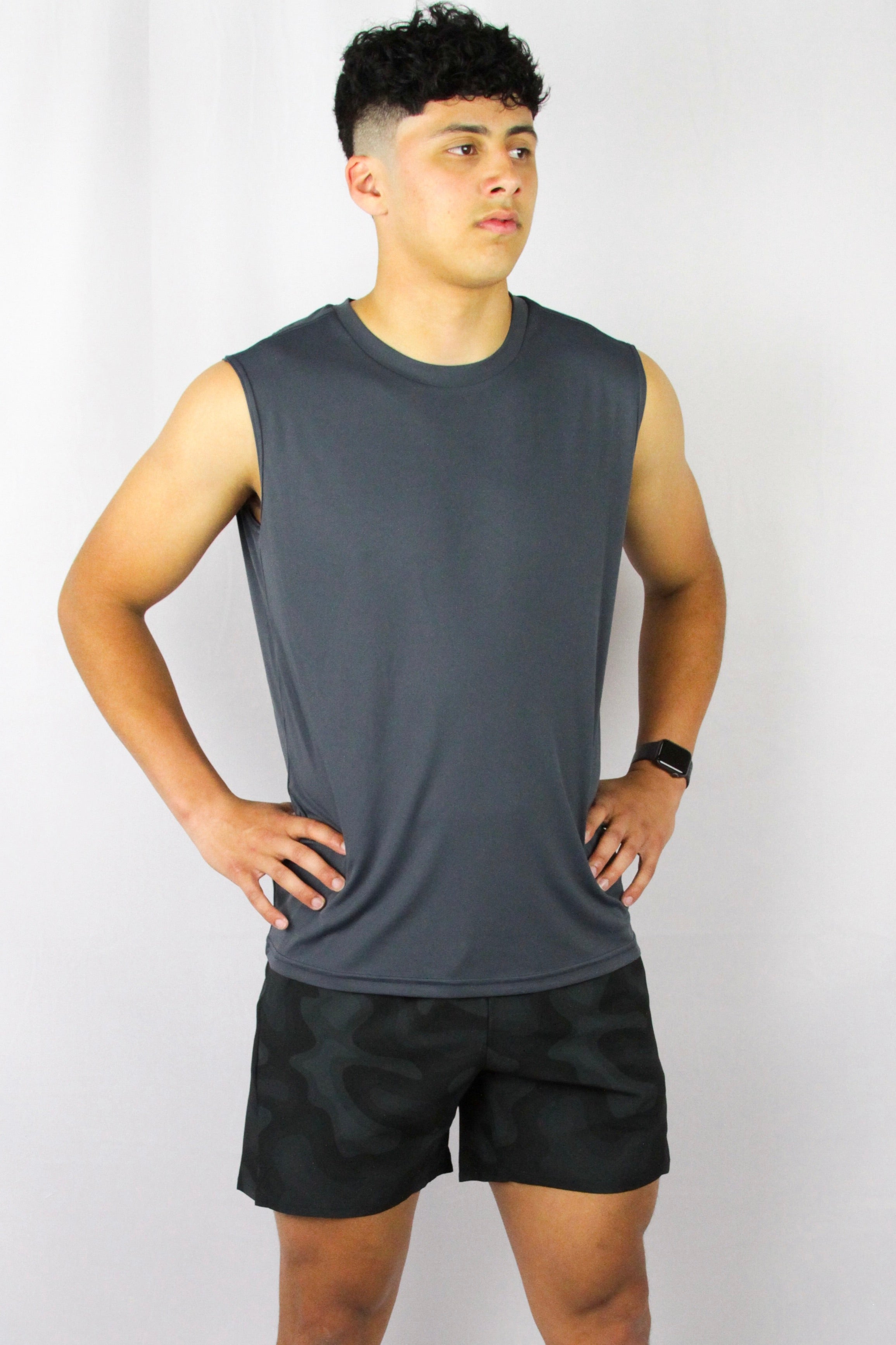 The Destin Cutoff Tank is lightweight and constructed from a recycled plastic waste blended spandex, which offers a unique combination of comfort, flexibility, and durability. This cutoff tank is perfect for training, running, or everyday wear.