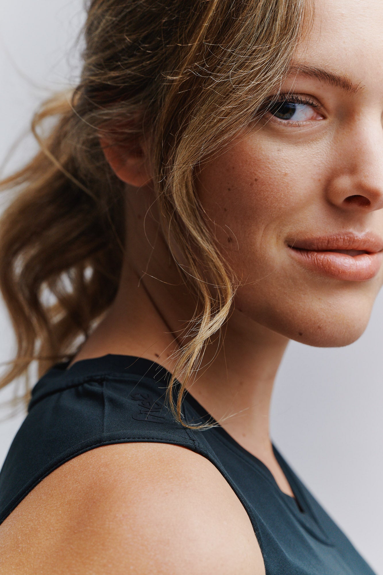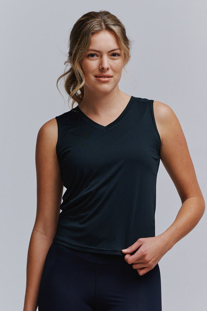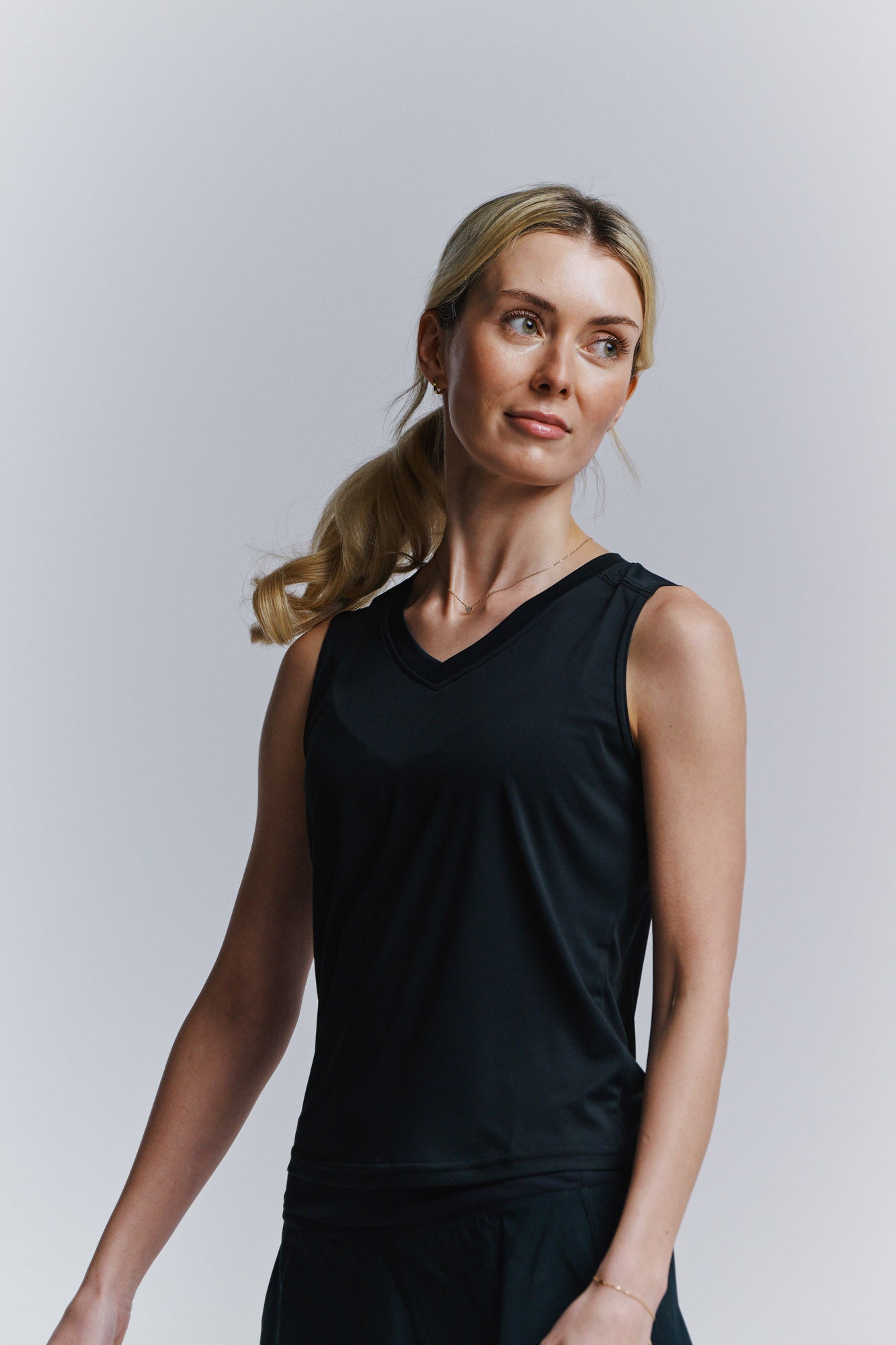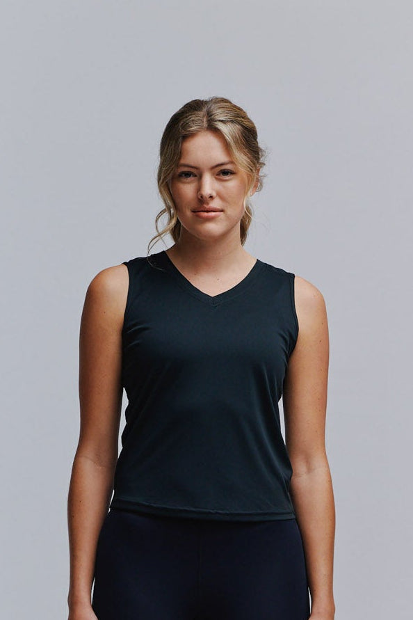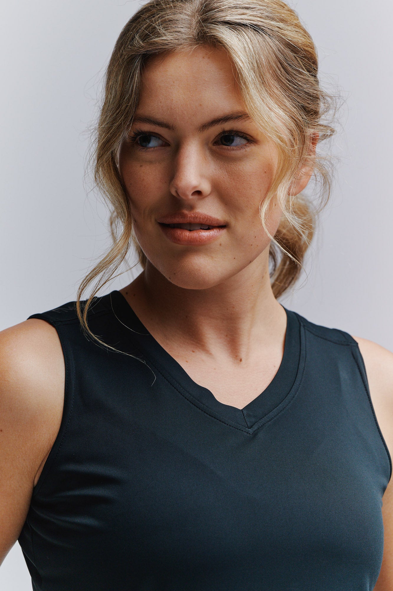 Created for training, running, or any court sport, the Destin Waist Fit length hangs just below the waist for ease of motion and comfort. The Sleeveless Tank allows enhances the arm motion for those warmer workouts or a perfect team jersey. It is constructed from recycled plastic waste blended with spandex which offers a unique combination of comfort, flexibility, and durability.